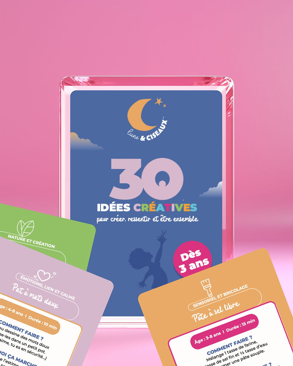 C’est comme ça qu’est né Lune & Ciseaux : un coffret créatif pensé pour les enfants et pour des moments partagés… loin des écrans.